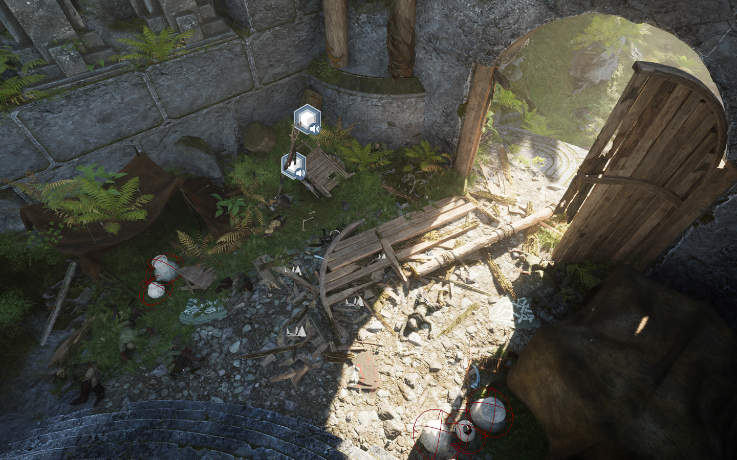 When things have settled a bit with the gameplay side of things, we started tweaking the modular arrangements to incoporate a better architectural design. Especially with shape languages that represented the tribe that lived here.