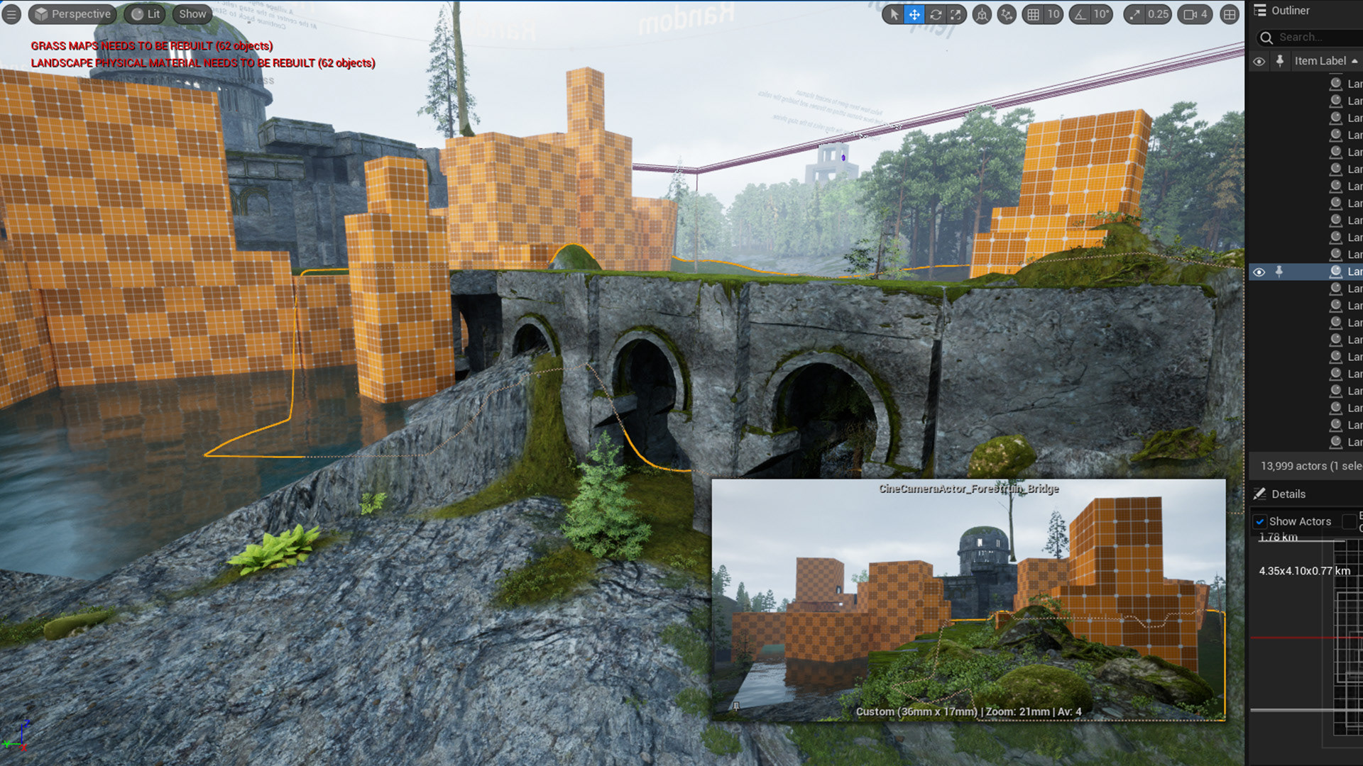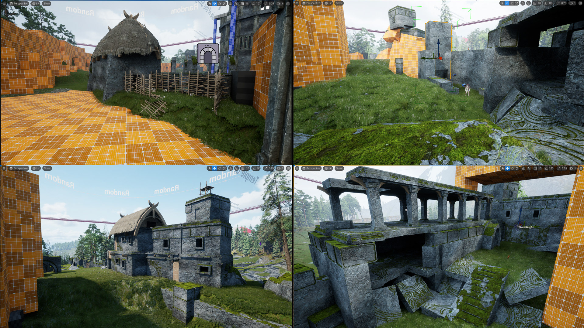 And block by block I started replacing the whiteboxing (Orangeboxing?) with actual meshes, terrain and building assets.
