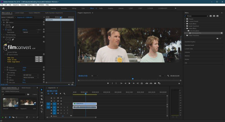 To move quickly away from the flat look, I use a LUT, in this case a plugin called filmconvert. Filmconvert is unique from other LUTs because they use different camera sensors and log profiles to match the desired color profile.