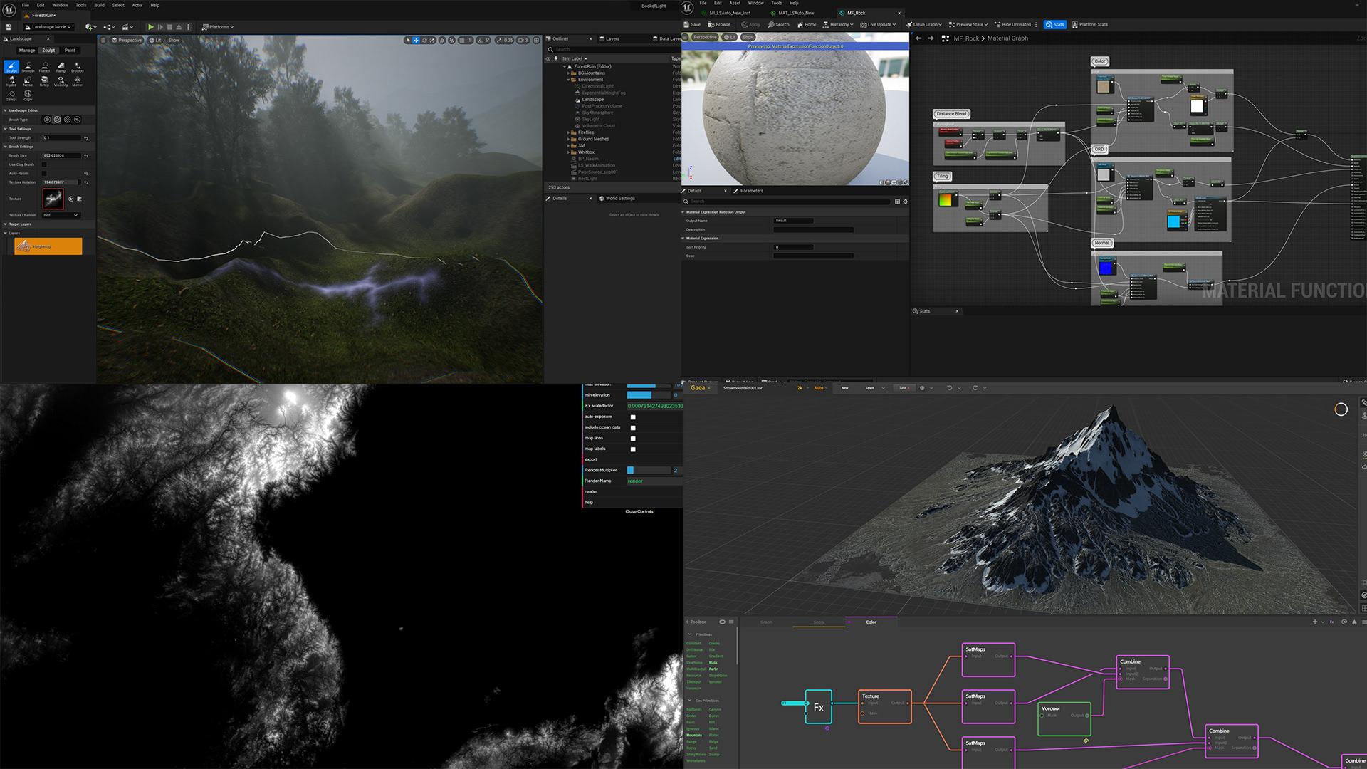 I went through the whole process of creating land sculpting landscapes, setting up materials, using real world and human made data to create better looking terrain and background.