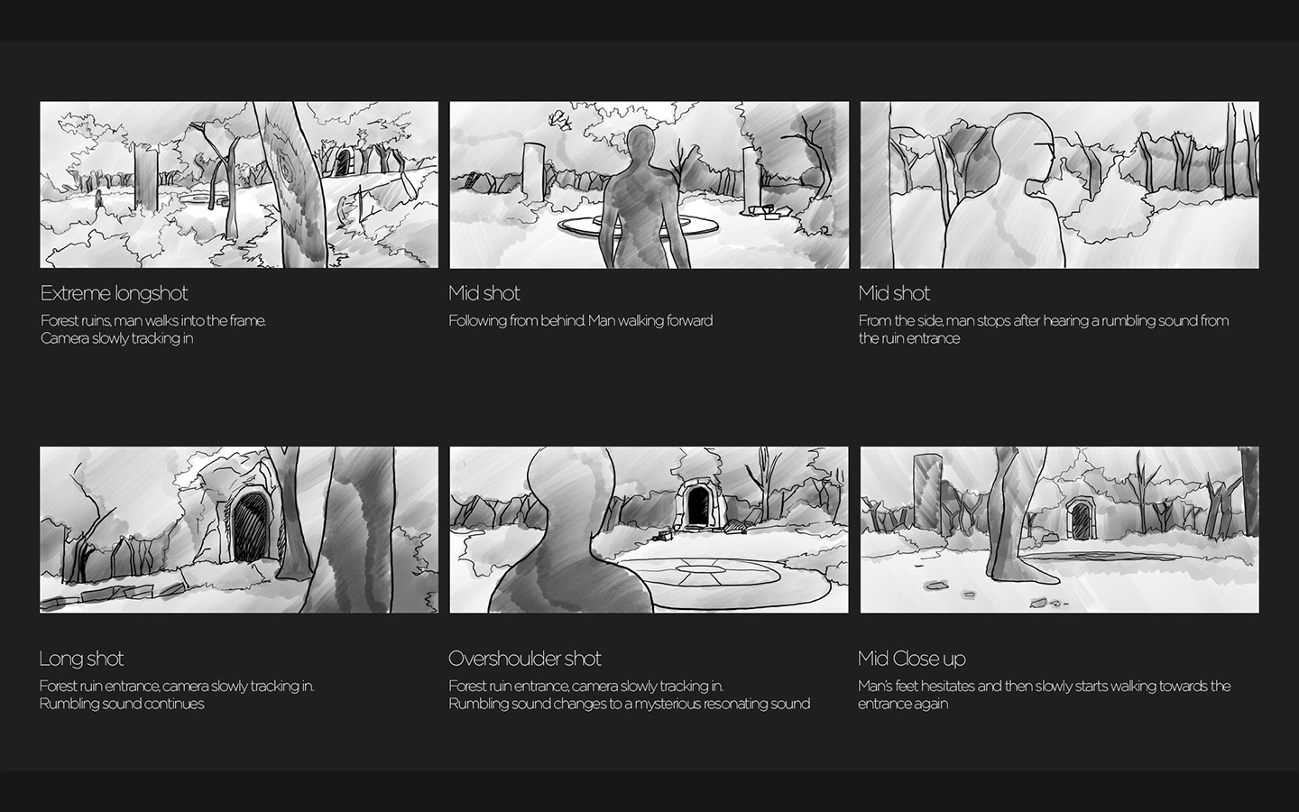 Some rough sketches of the two main environments and shots used for the tutorial course.