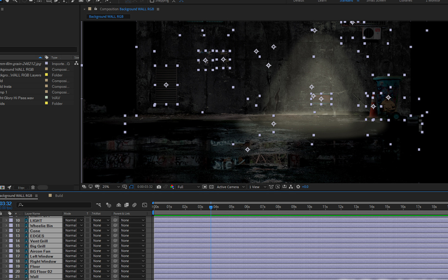 Creating the background plate in After Effects with lots of different graphic assets.