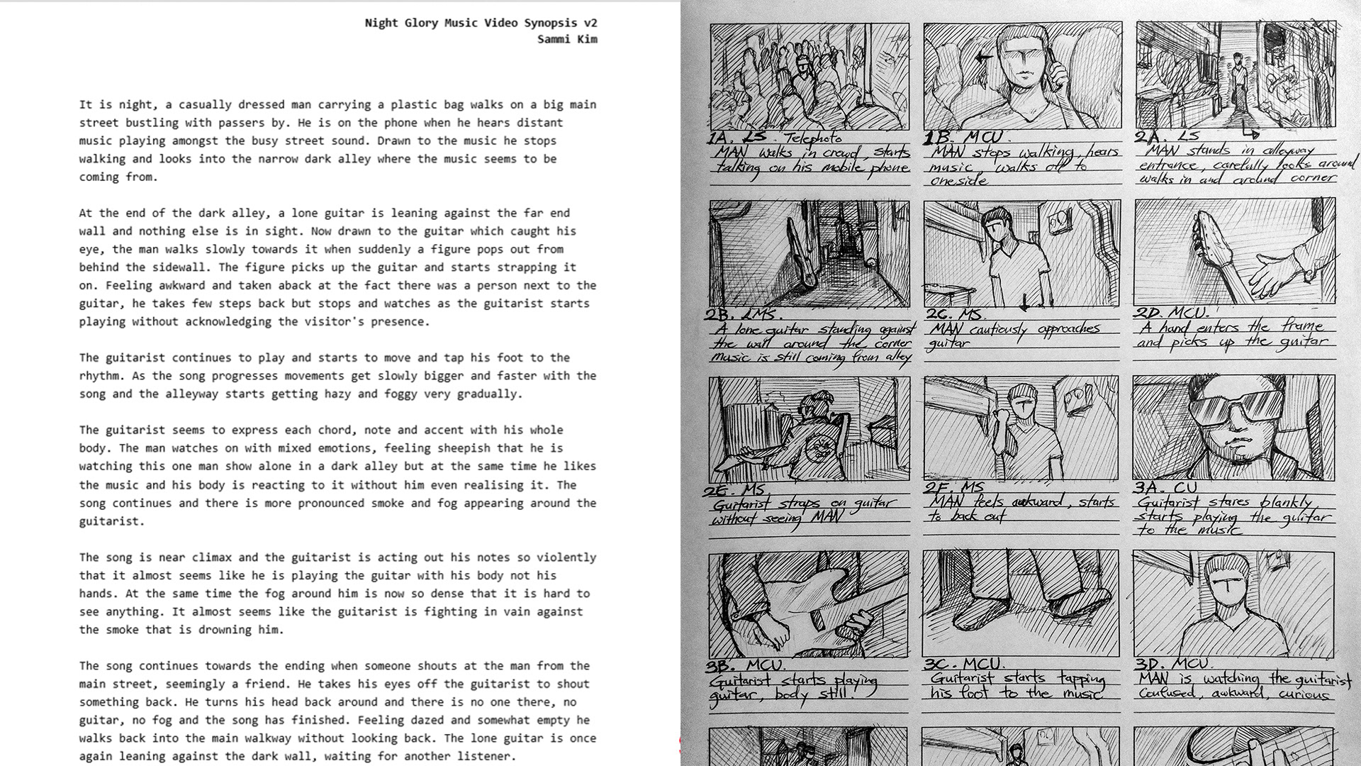 Synopsis and storyboards are important in any narrative shooting, they help to visualize the final product and see the flow of the cuts in the pre-production phase.