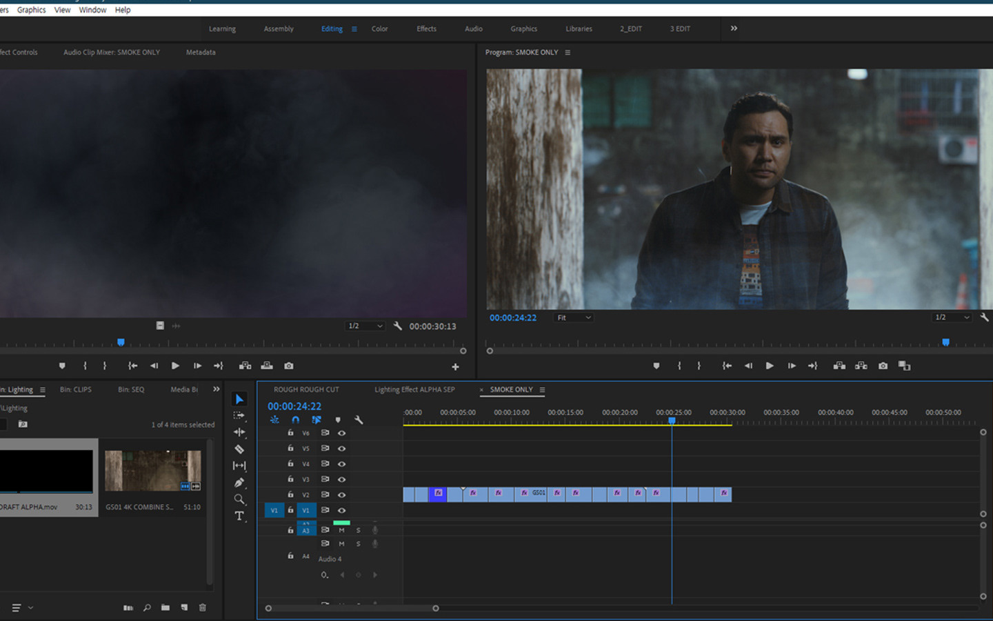 I composited some smoke in After effects during the post-production process. Using real smoke in front of a greenscreen during a shoot wasn't going to work.