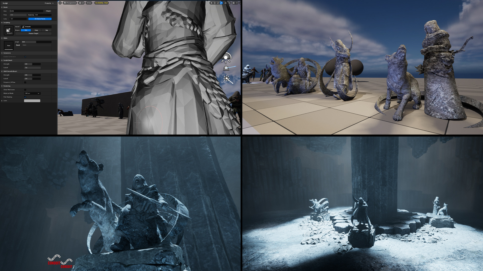 Unreal Engine modelling tools came in handy for creating custom statue meshes from existing assets.